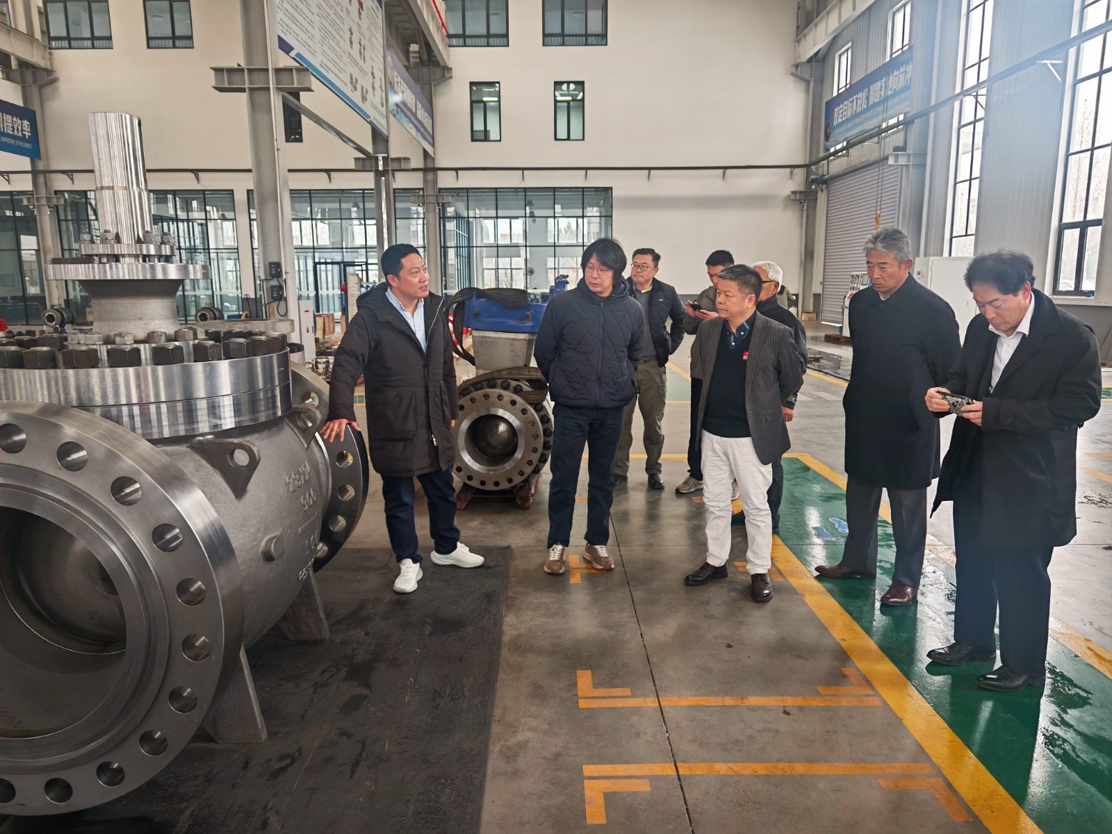 谢正泽董事长陪同日本九门制作所株式会社一行深入到生产车间进行了参观考察,深入公司各生产车间机加工、球体加工、喷涂、研磨、装配、试压、最终检验、涂装发货等主要工序过程以及加工制造过程中的半成品和生产完成的阀门成品存放区进行了参观。期间双方还举行了研讨会。会议上,谢正泽董事长详细介绍了AFA公司安全生产、经营管理、技术研发和市场推广等相关情况。公司宽阔的厂房、精良的装备、精细的管理以及员工丰富的专业知识和有素的工作能力,给客人留下了深刻良好的印象。来访客人对AFA公司产品结构、技术水平、市场定位和现场管理等给予了高度评价。